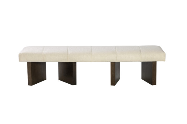 Soft upholstered sectional bench juxtaposed with angles timber and mottled iron finish leg