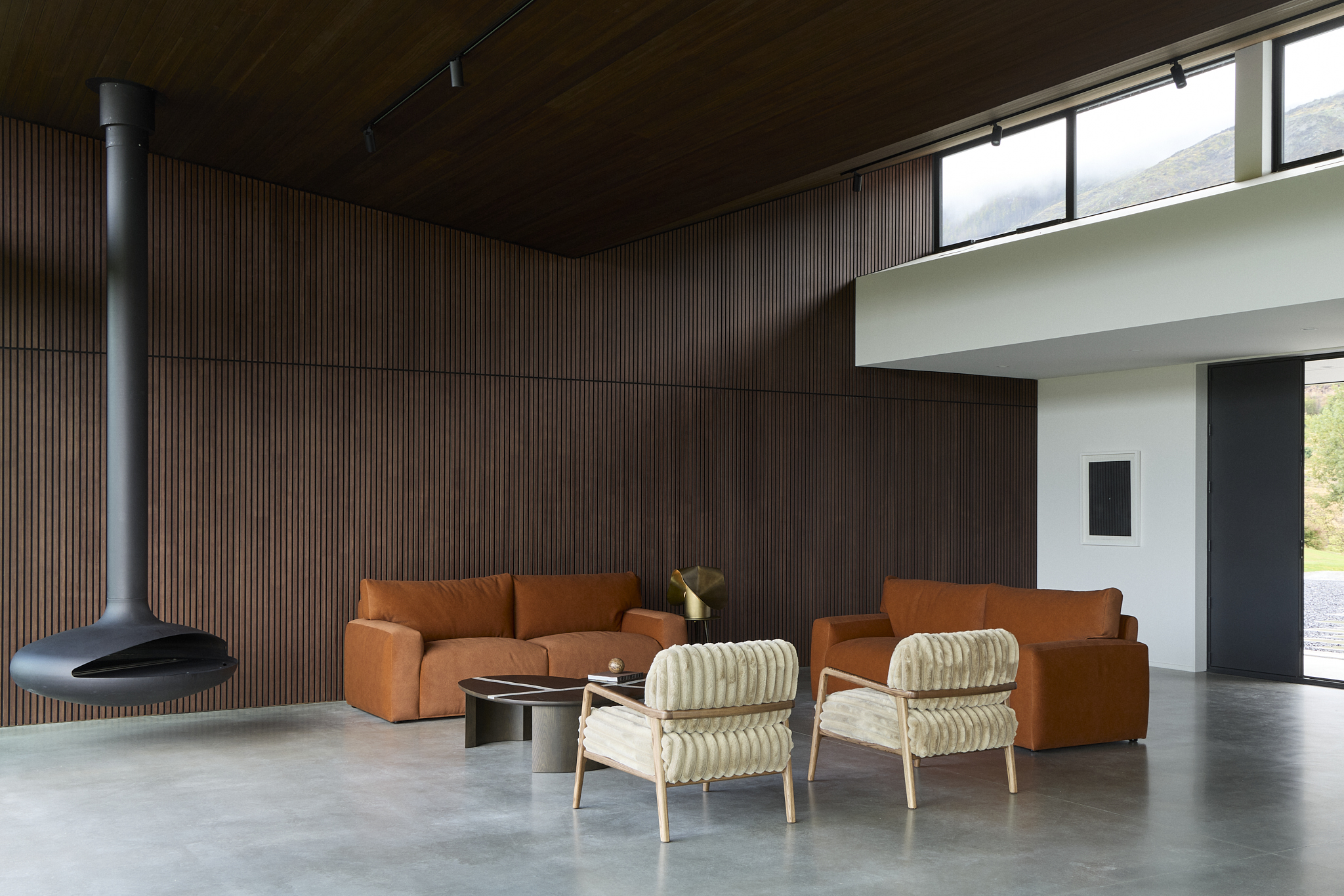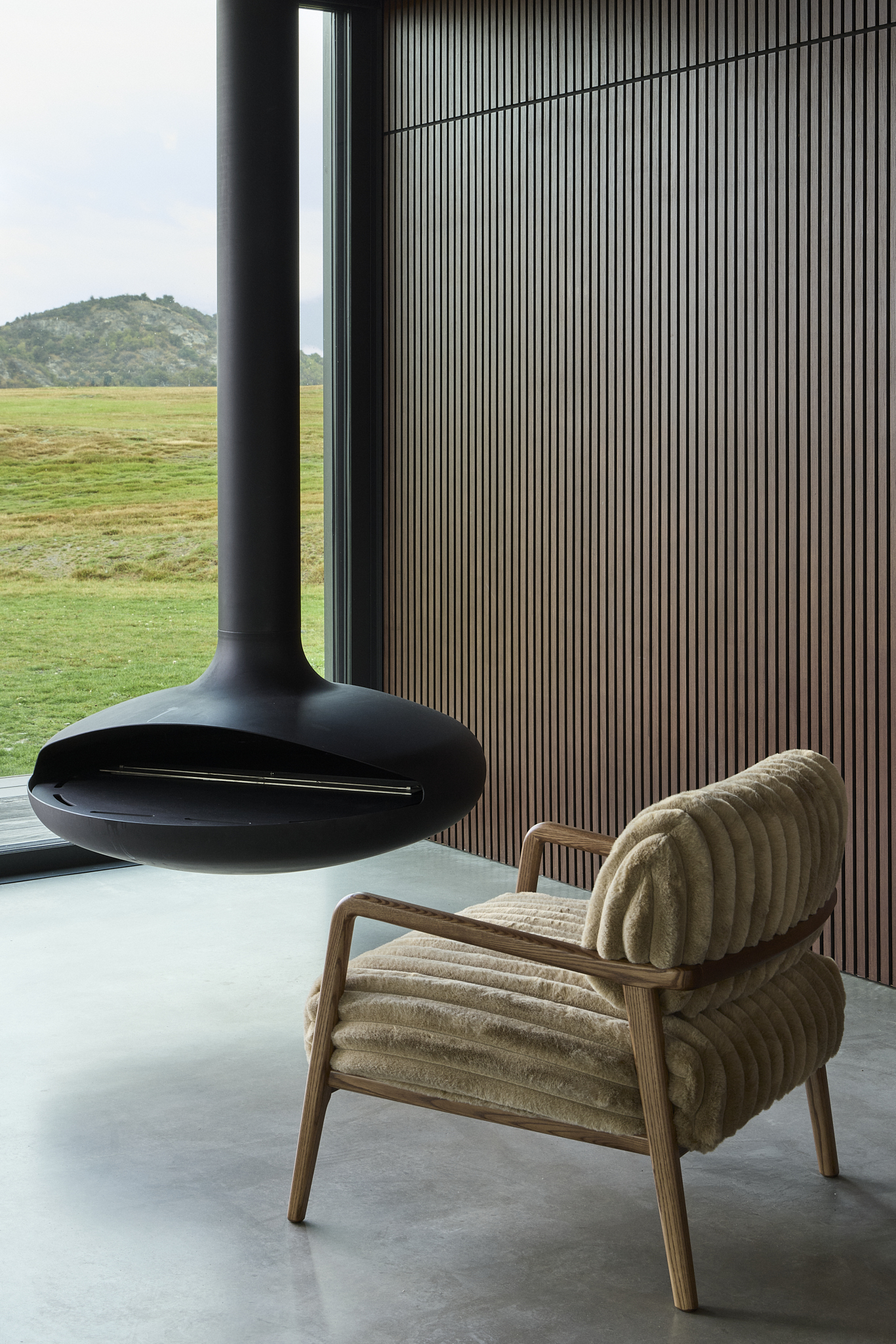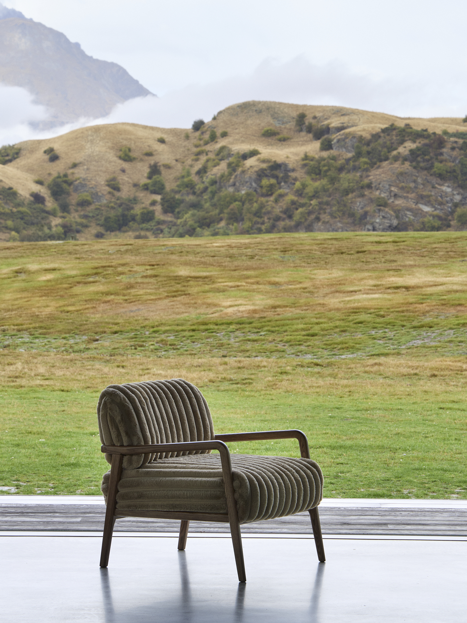 A statement in comfort and craftsmanship, this armchair blends sculptural timber detailing with deeply textured upholstery. The curved solid timber frame creates a warm architectural outline, while the generously padded seat and backrest feature a distinctive ribbed design that invites you to sit and relax.